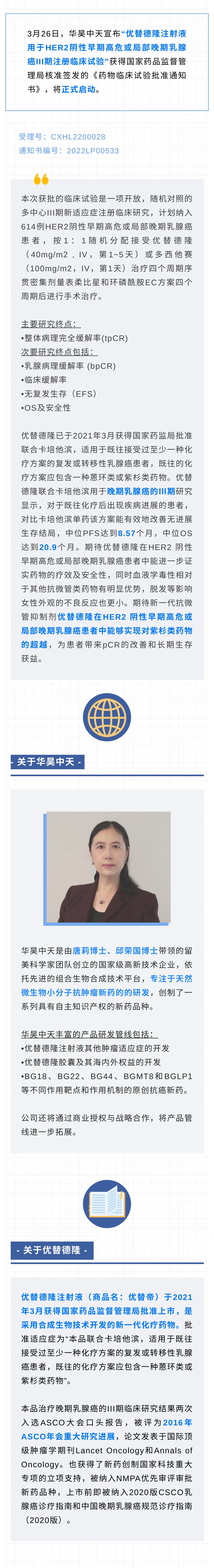 优替德隆治疗HER2阴性乳腺癌新辅助III期注册临床试验获得NMPA批准